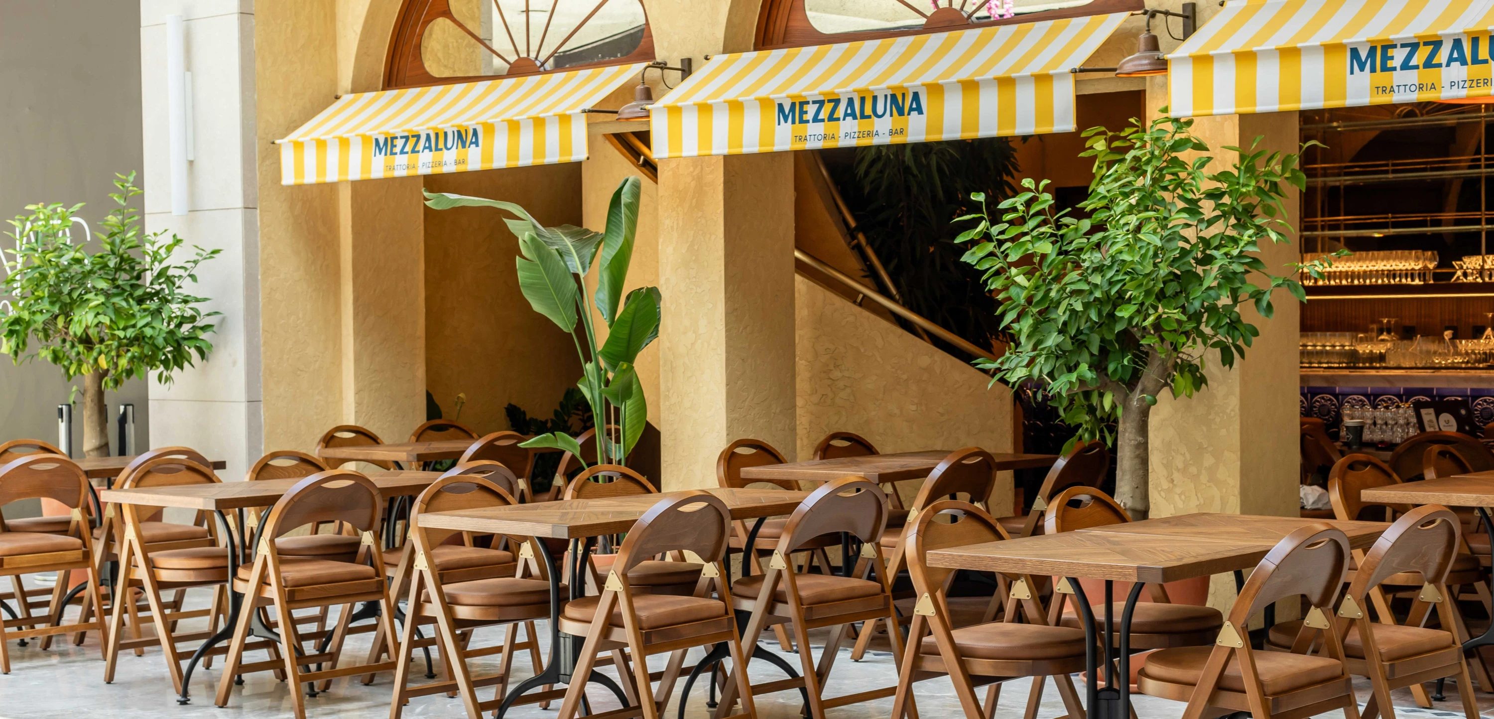 İtalyan mutfağının vazgeçilmez tatlarını menüsünde bulunduran Mezzaluna, renkli dekorasyonu, hızlı ve kaliteli servisi ve yemek yerken rahat ve mutlu hissettiren atmosferiyle misafirlerine günün her saati kaliteli ve erişebilir bir yemek deneyimi sunuyor.